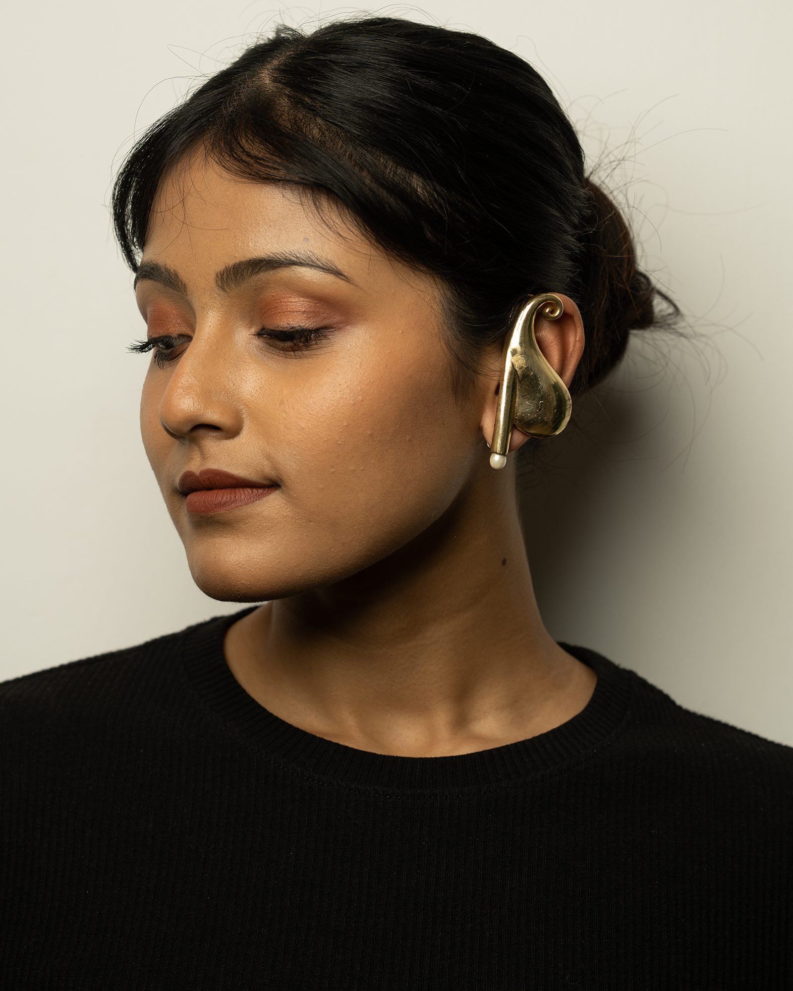 A bold bloom frozen in gold, the neckpiece echoes the hibiscus with its radiant, petal-like curves and unfurling grace. It wraps the collar like a sun-kissed flower in full flourish—fierce, feminine, and impossible to ignore.