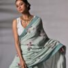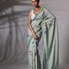 Purple magnolias beautifully detailed in the digital printed cotton saree