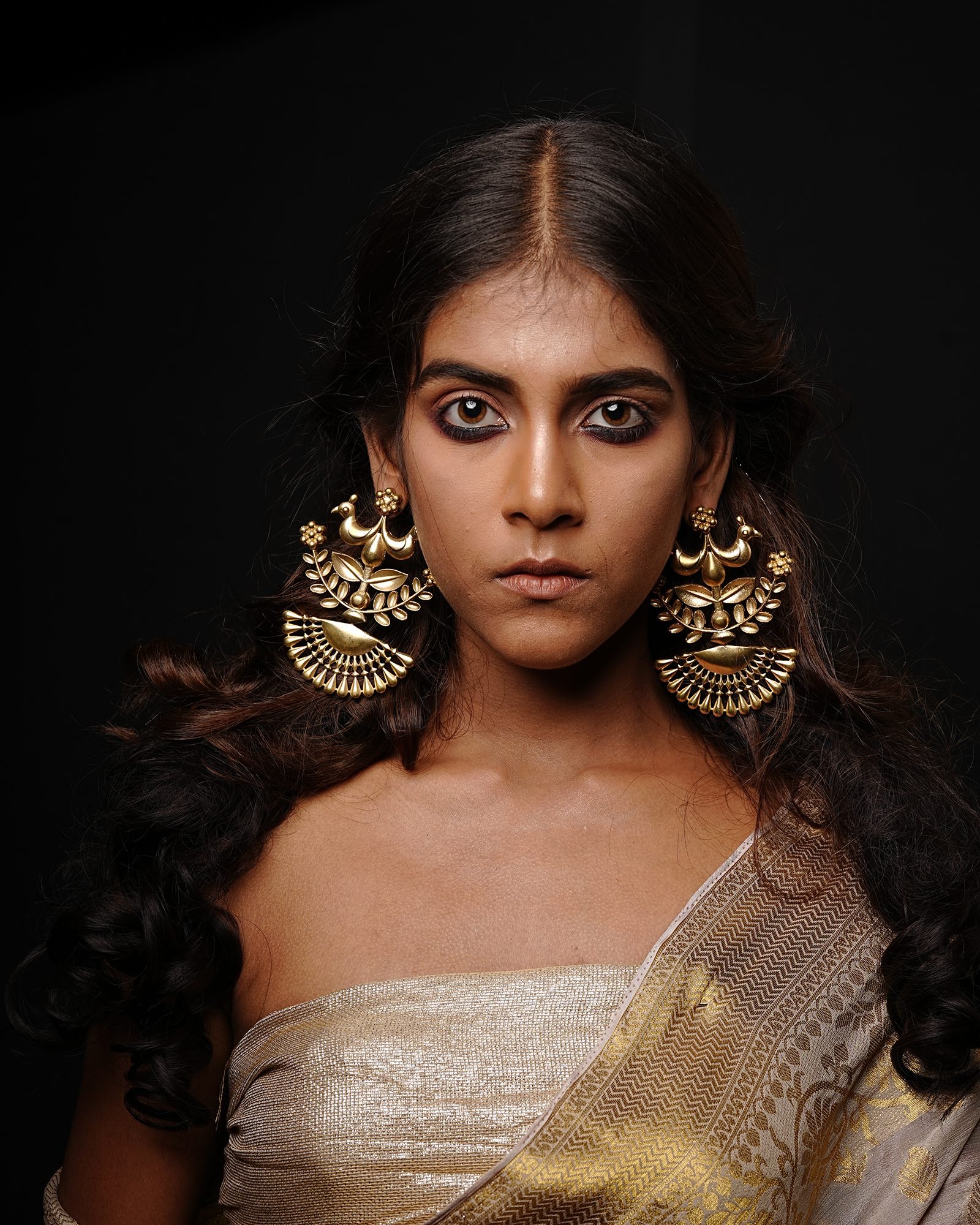Wonderful symmetrical design which has flowers and birds in it and with a structure which has a fan inspired look at the end of it and gives the wearer a natural look